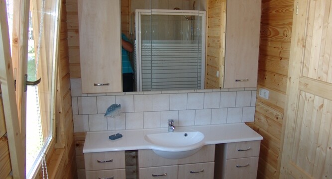 Das Ferienhaus „Fjord“ bietet auf einer Wohnfläche von 80 m² über 2 Etagen Platz für 5 Personen. Sie verfügen über einen Wohnraum mit großer Sitzecke , 2 separaten Schlafräumen, Größe der Betten 90×200, Sat- TV, einer großen Küche mit Komplettausstattung (Geschirrspüler, Waschmaschine) und separatem Essplatz.
