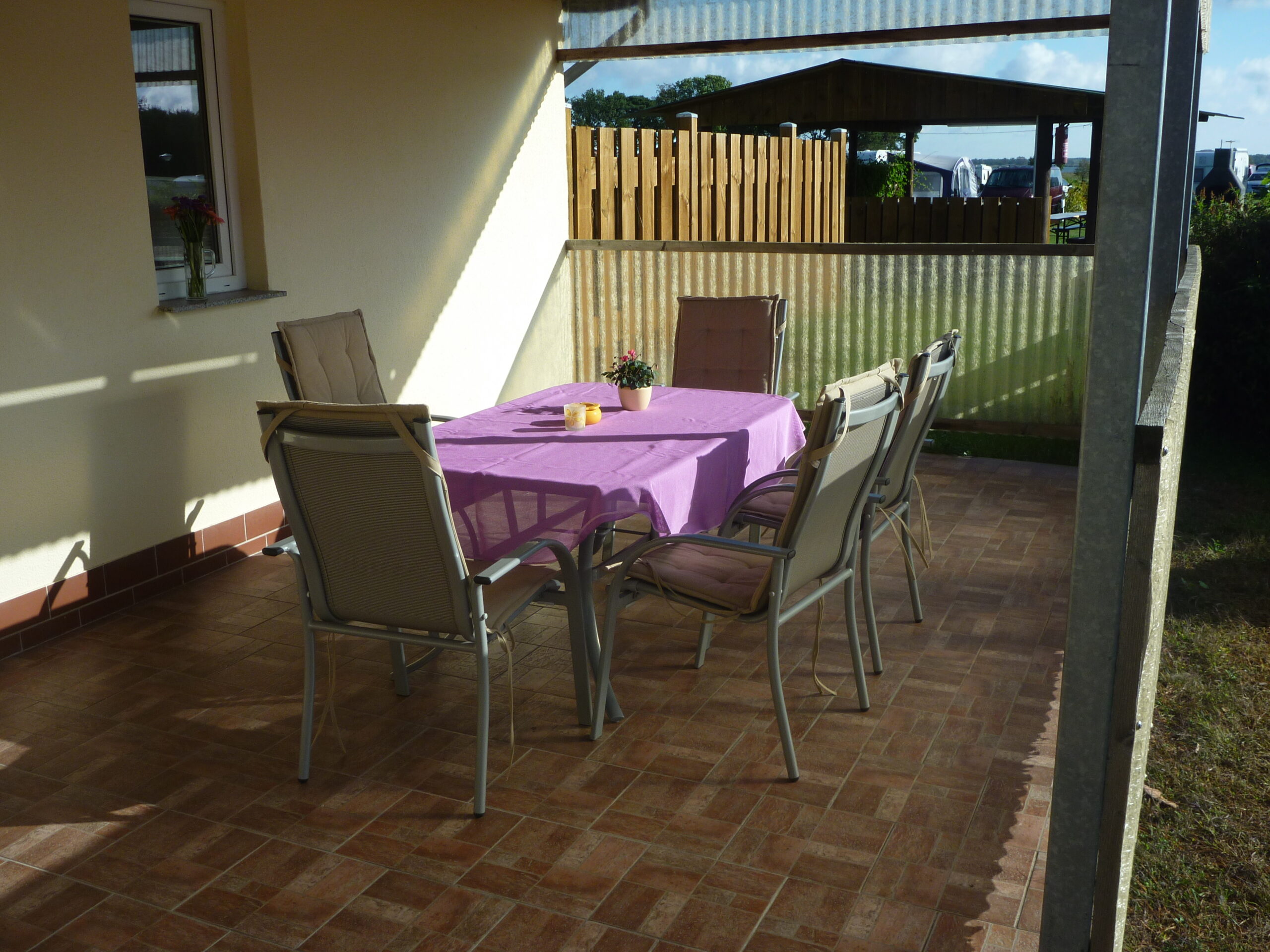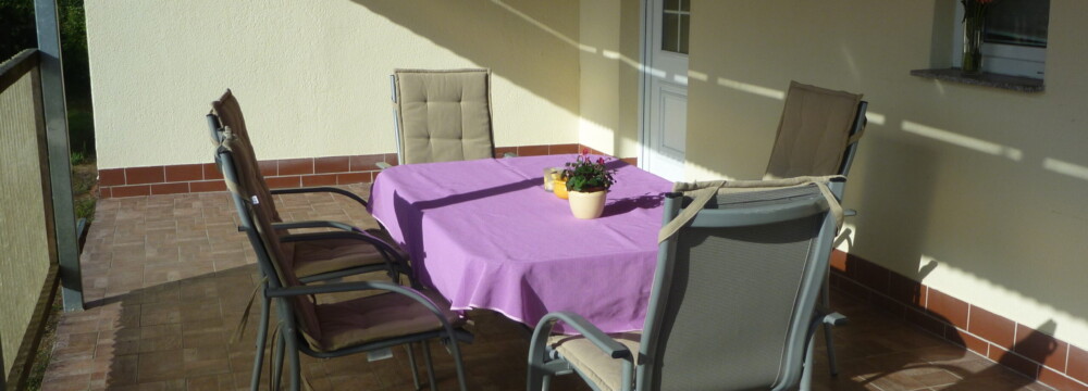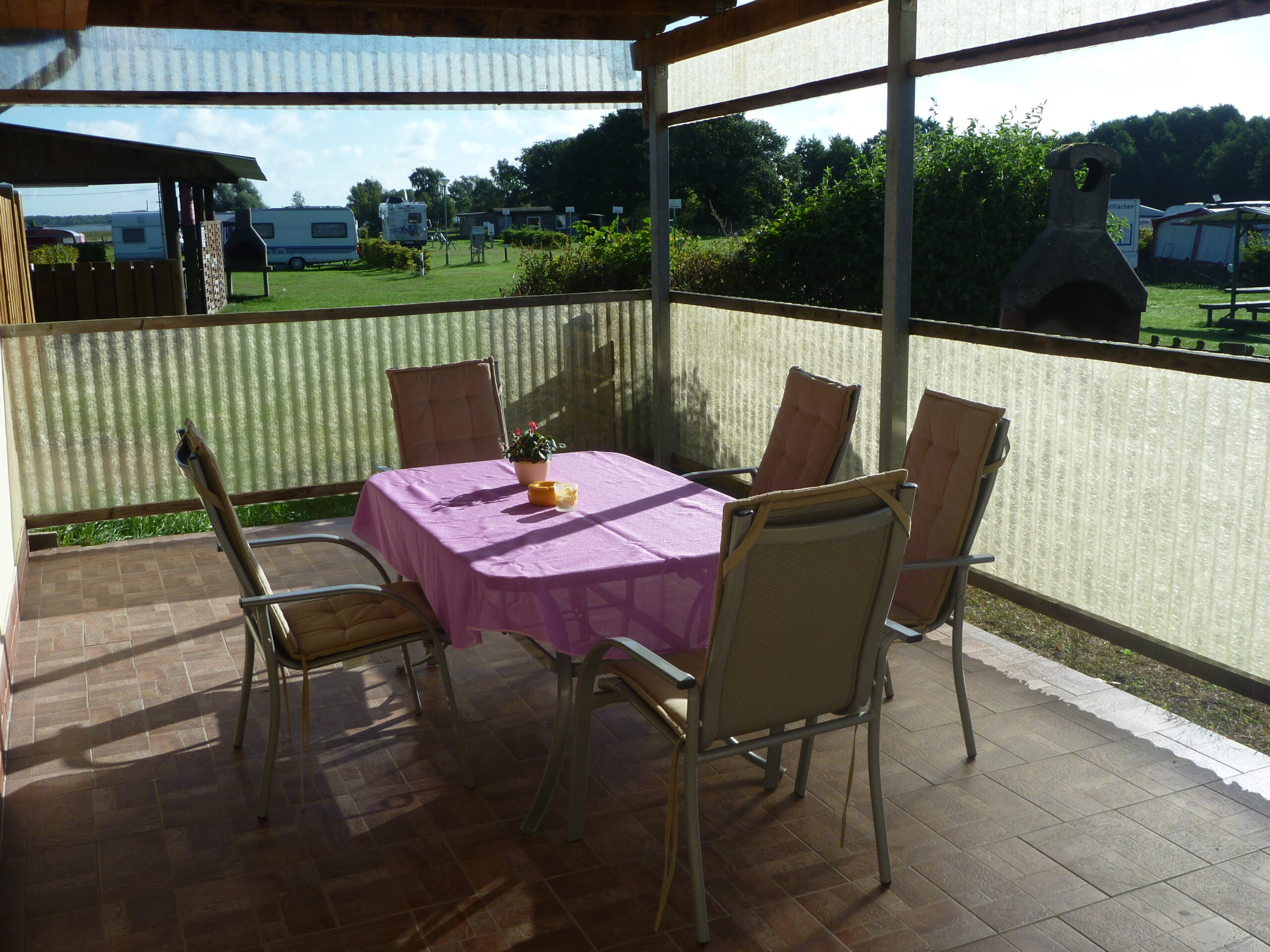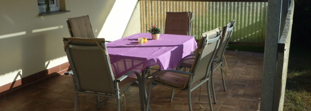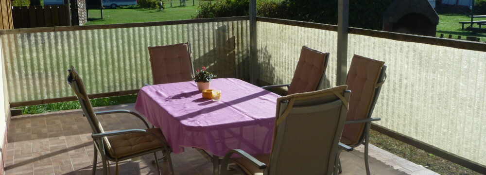 Die Überdachte Terrasse ermöglicht auch bei schlechtem Wetter einen Aufenthalt im Freien.