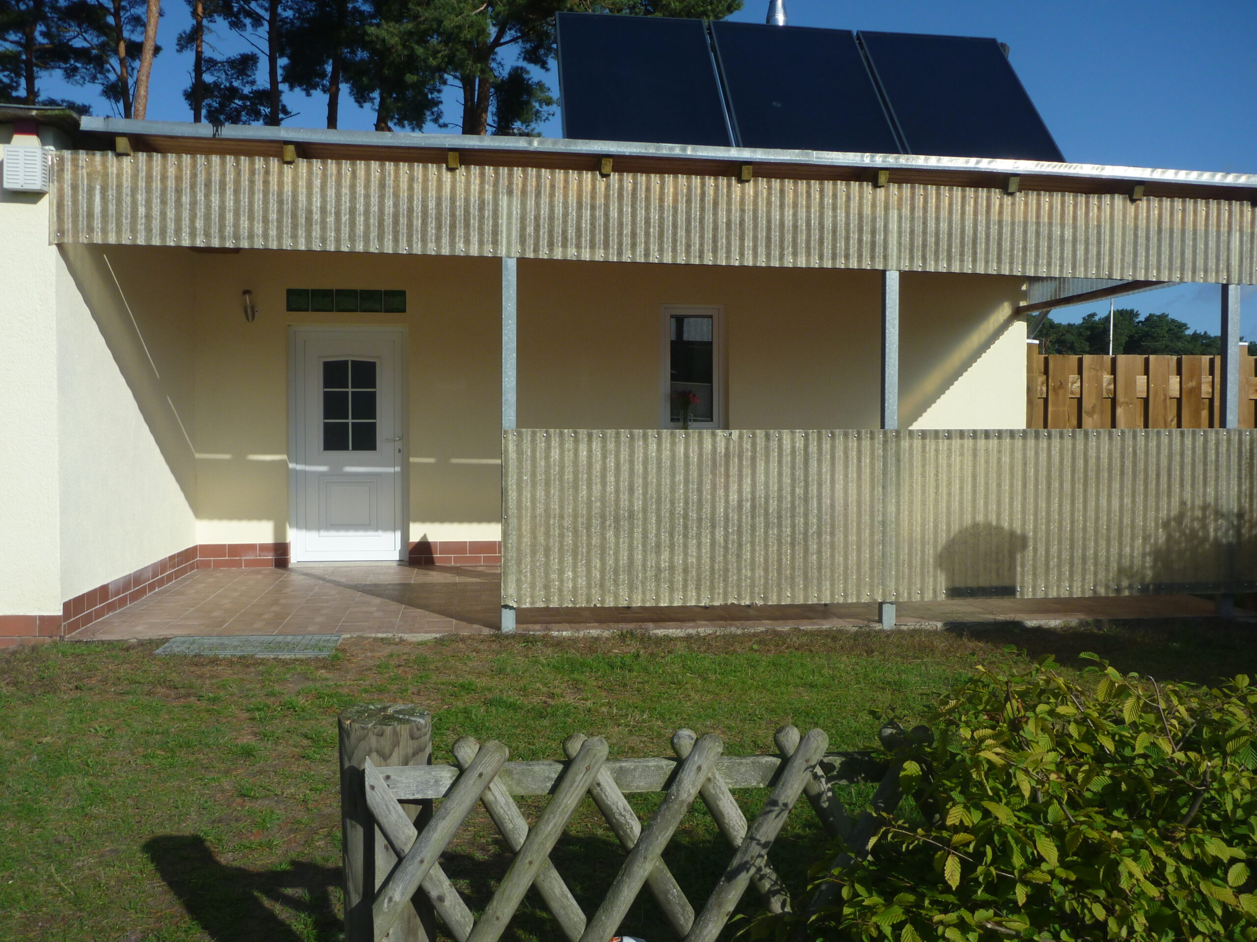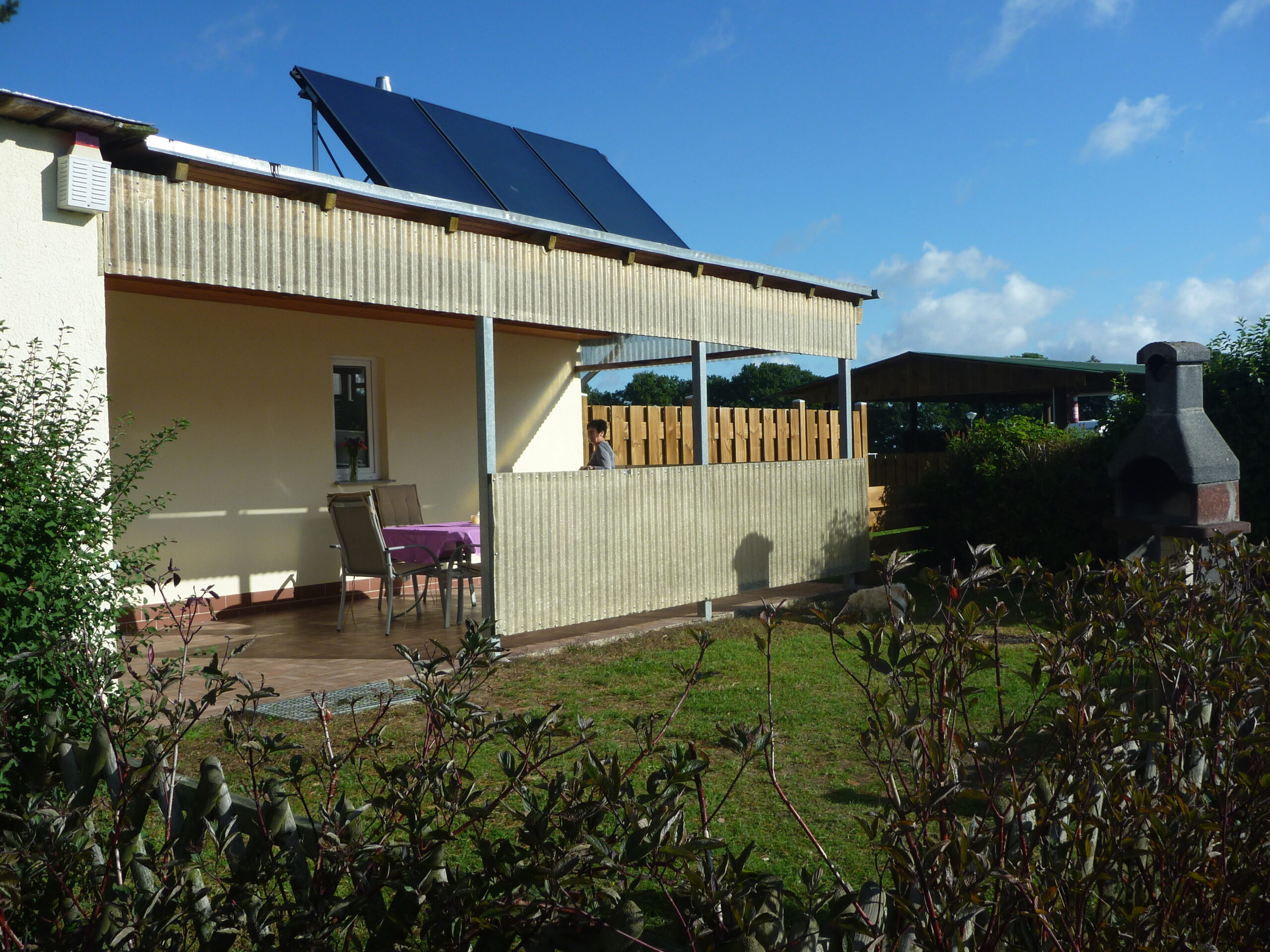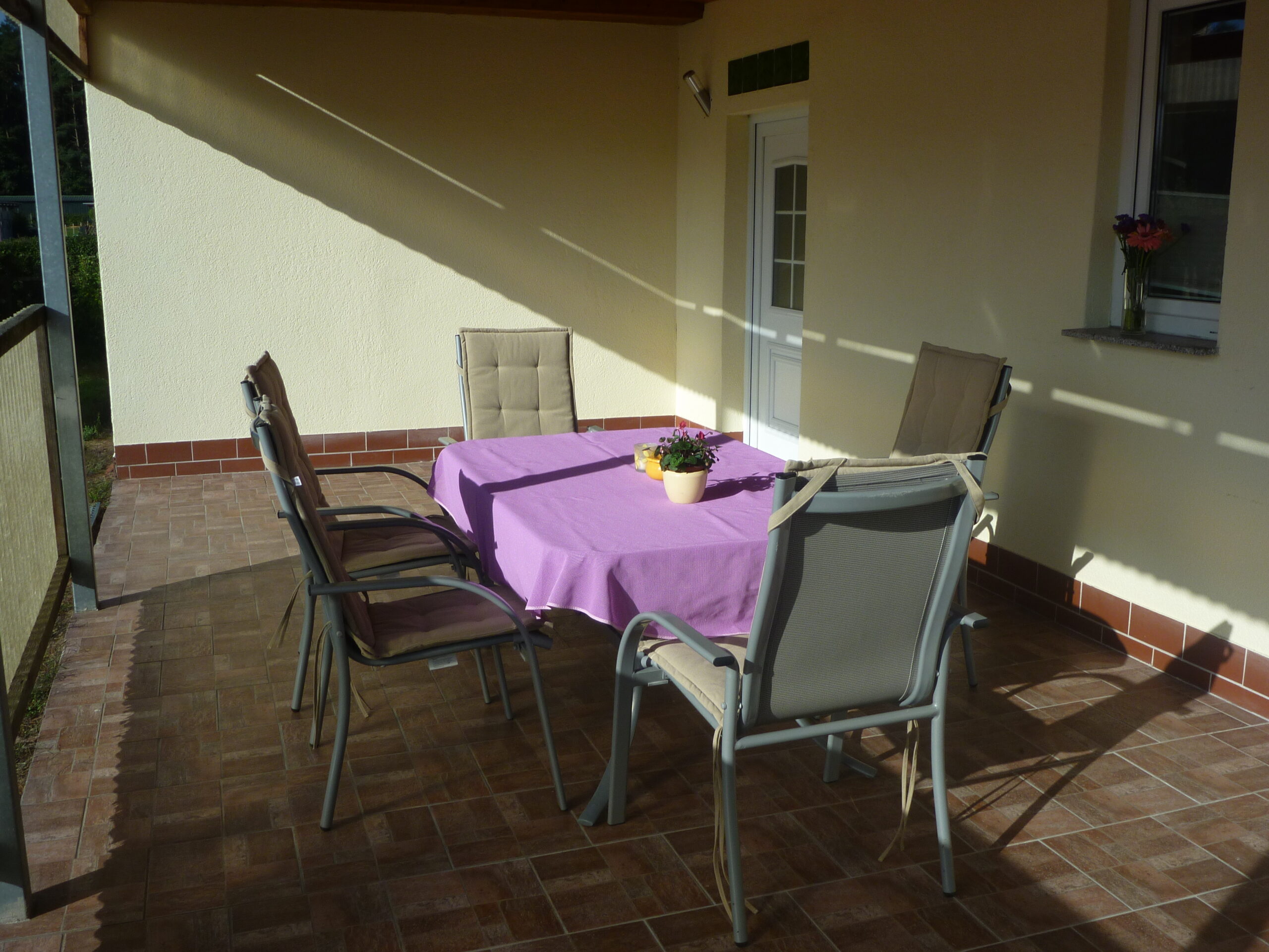 Die Überdachte Terrasse ermöglicht auch bei schlechtem Wetter einen Aufenthalt im Freien.