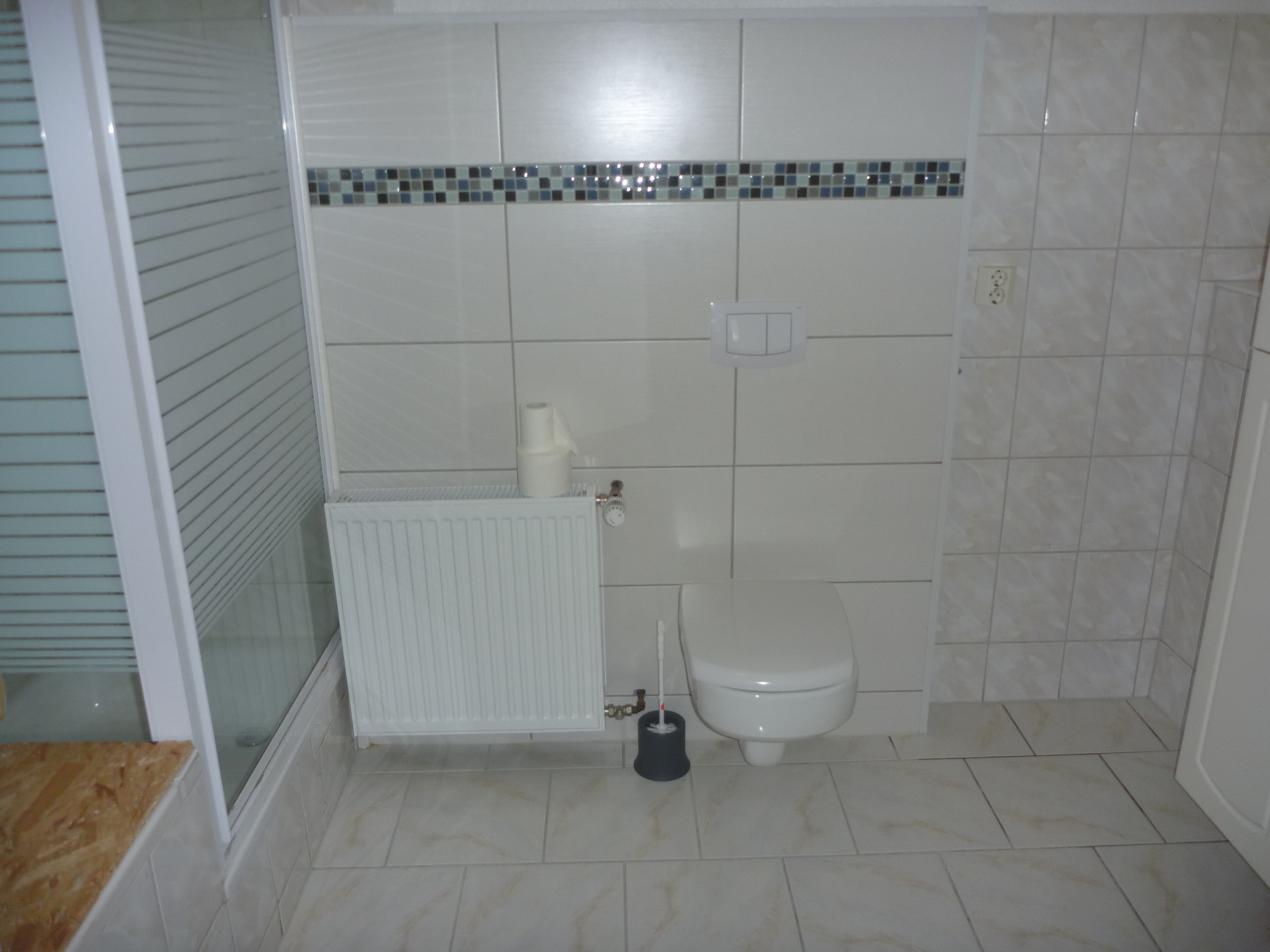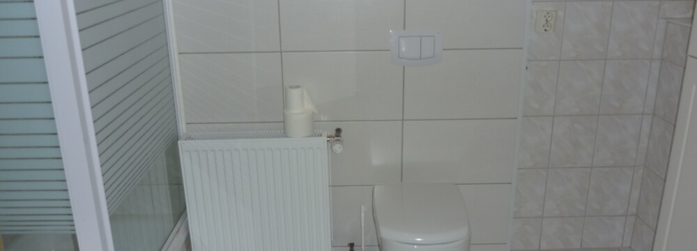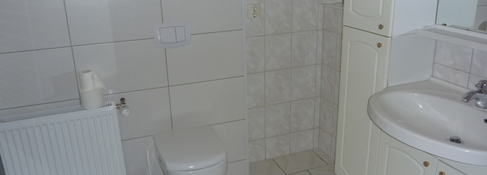 Das große Badezimmer ist ausgestattet mit Dusche und WC.