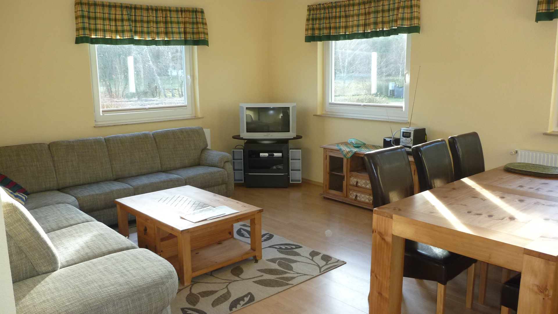 Das Ferienhaus „Rudenblick“ bietet auf einer Wohnfläche von 85 m² Platz für 5 Personen. Sie verfügen über einen Wohnraum mit großer Sitzecke , 2 separaten Schlafräumen (Bettengröße 90×200), Sat- TV, einer großen Küche mit Komplettausstattung (Geschirrspüler, Mikrowelle) und separatem Essplatz.