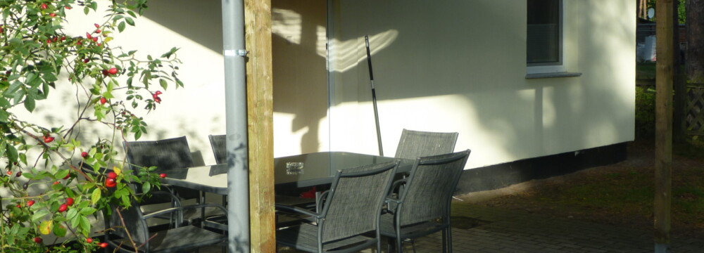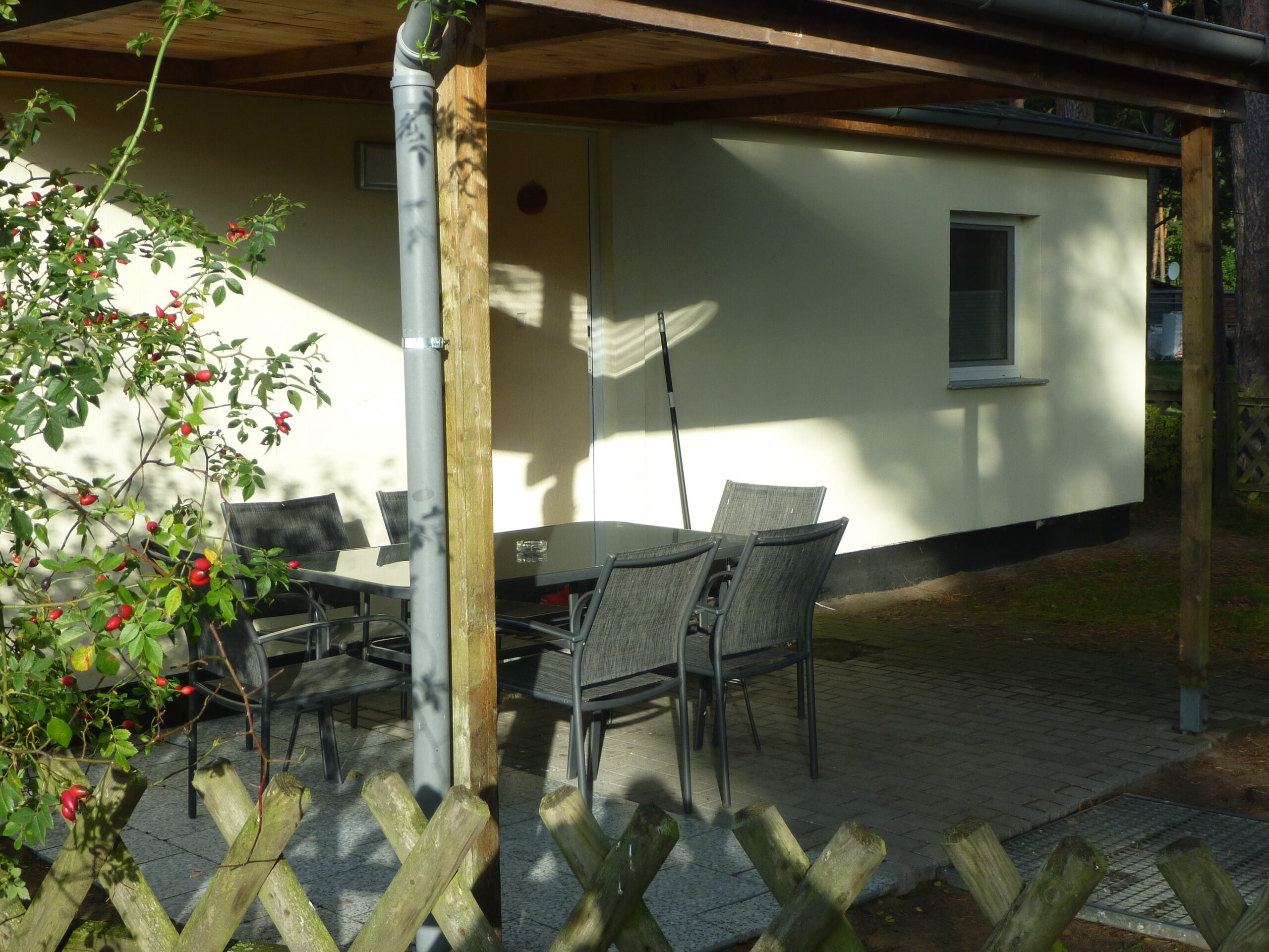 Die Überdachte Terrasse ermöglicht auch bei schlechtem Wetter einen Aufenthalt im Freien.